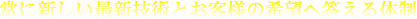 新しい企画に取り組み中に、常に重視される貴重な材料となります。また、企画が完成して「ありがとうございます」のお客様のお言葉が今後の新企画に対する『ちから』となります。私達は、この『ちから』を企業の動力源とし、常に先行く新企画に取り組むことをお客様とお約束いたします。